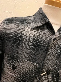 オープンカラーのスタイリングと共にポケットフラップ・カフス・ステッチワークといったディテールは