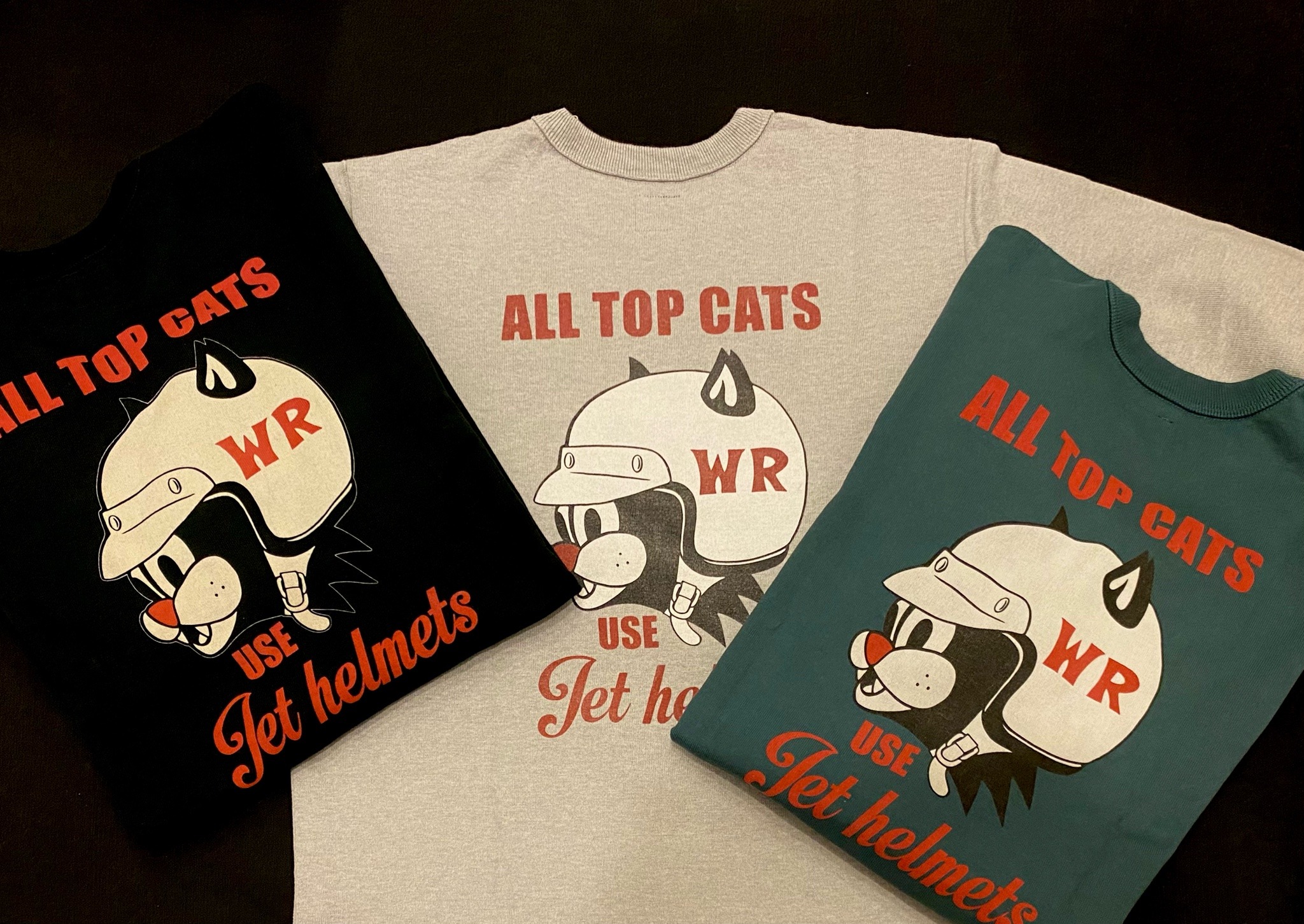 バックにはBELL HELMETのHORSEをCATへ描き換えヘルメットを着用