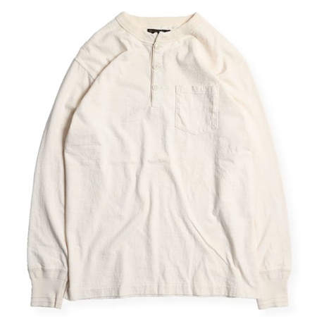 16番単糸を吊り編み機でゆっくりと編み上げた丸胴ヘンリーネックは