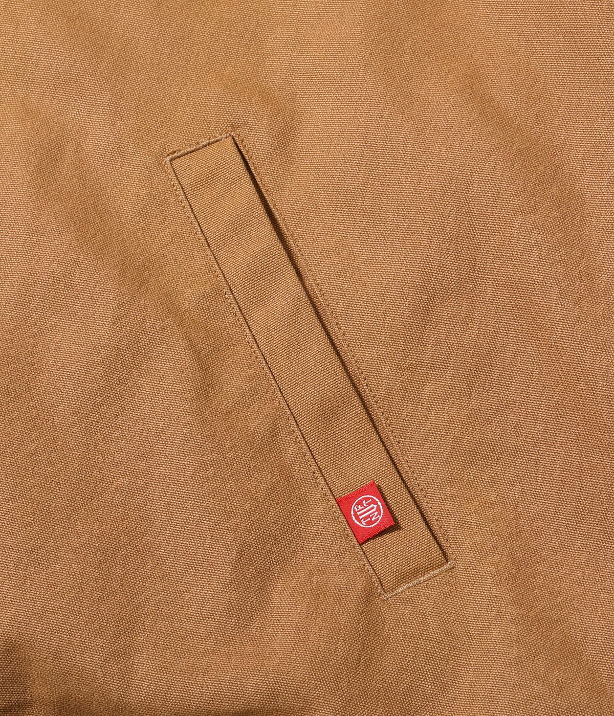 独自に織り上げた硫化染めの12.5ozコットンダック生地を使用したワークパーカ