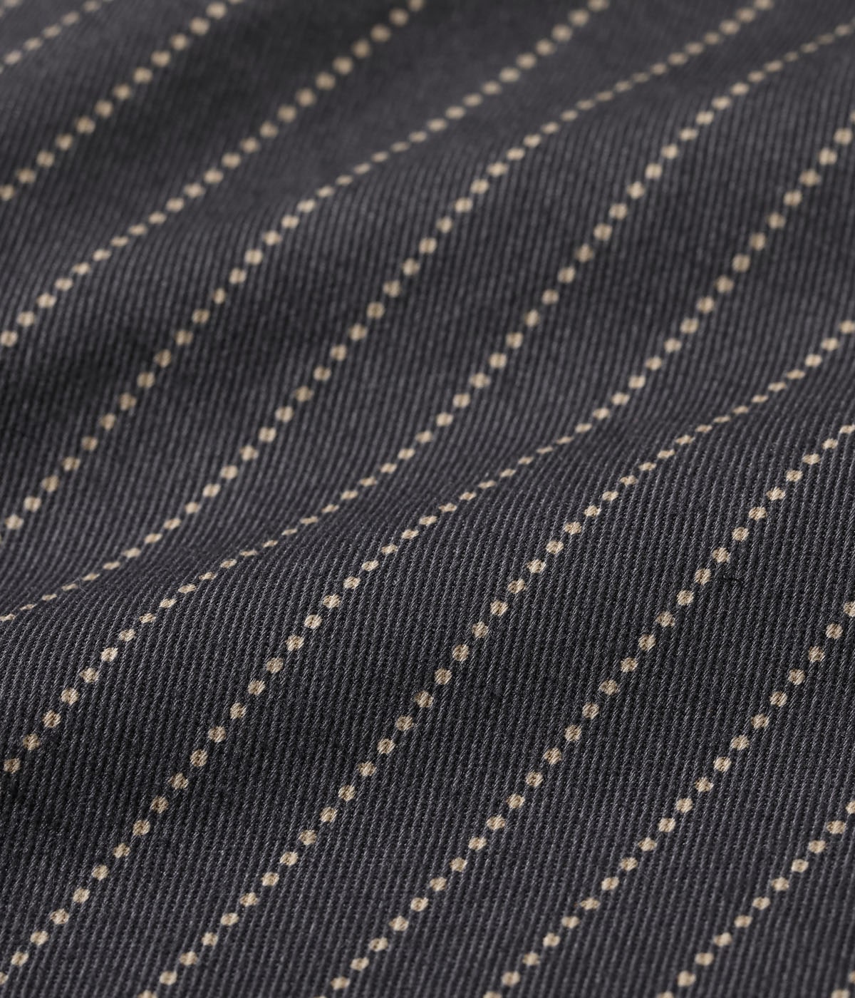 ブラックの硫化染料でベースを染めたあとに抜染でドットストライプをプリントしている