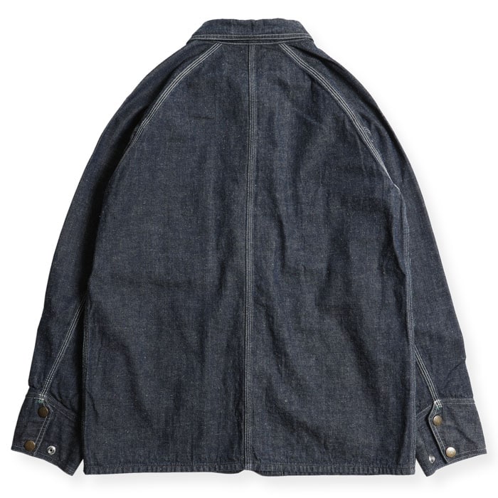 浮き文字スナップボタン・ラグランスリーブ・ポケット補強布のセルビッチヘリンボーン地