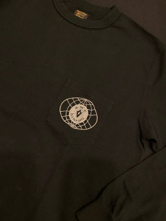 地球儀のワンポイントが左胸ポケットにプリントされ、バックプリントが大きく映えるオーセンティックでアメカジライクな一着