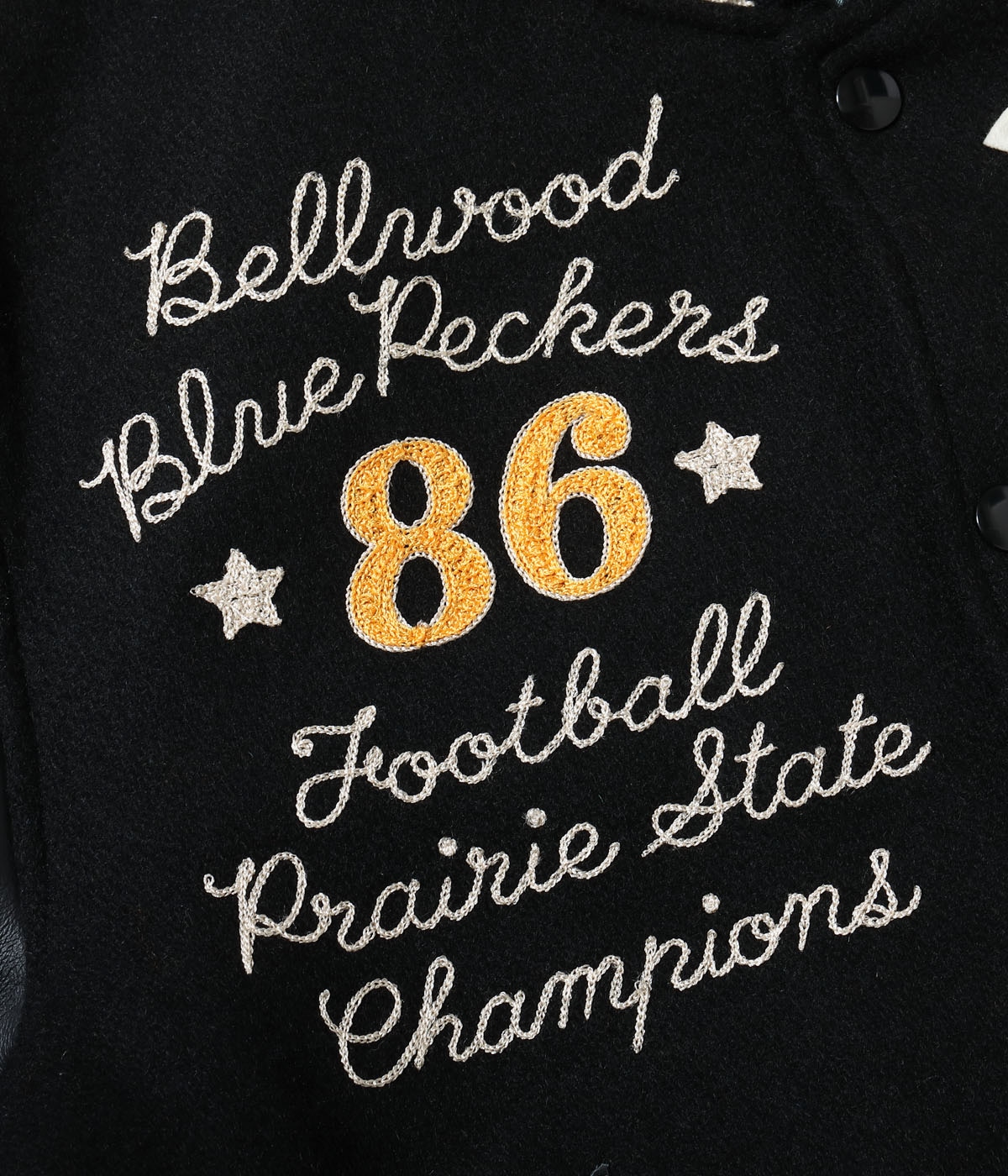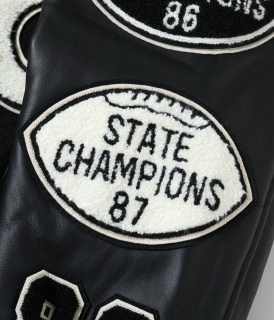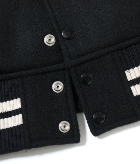 フットボールチーム、ブルーペッカーズのアワードジャケット 右胸に記された「Prairie State」とは彼らが拠点を置くイリノイ州のニックネームで 1986年と87年に州の大会で優勝した記念のシニールや刺繍が あらゆる部分にデコレーションされた豪華な一着 モノトーンで統一したボディにオレンジカラーの装飾が映える WHITESVILLE "WOOL MELTON AWARD JACKET" ホワイツビルのアワードジャケットは身頃に防寒性の高い30オンスのウールメルトン 袖には魅力的な経年変化をみせる米国産のステアハイドを使用 ライニングはレーヨンコットンのキルティングとなっており 保温性に優れると共に袖入れがしやすく快適な着心地を誇る WV15783 30oz. WOOL MELTON AWARD JACKET "BLUE PECKERS" PRICE ¥107,800 (Tax in) 在庫につきましてはお問い合わせください。 |