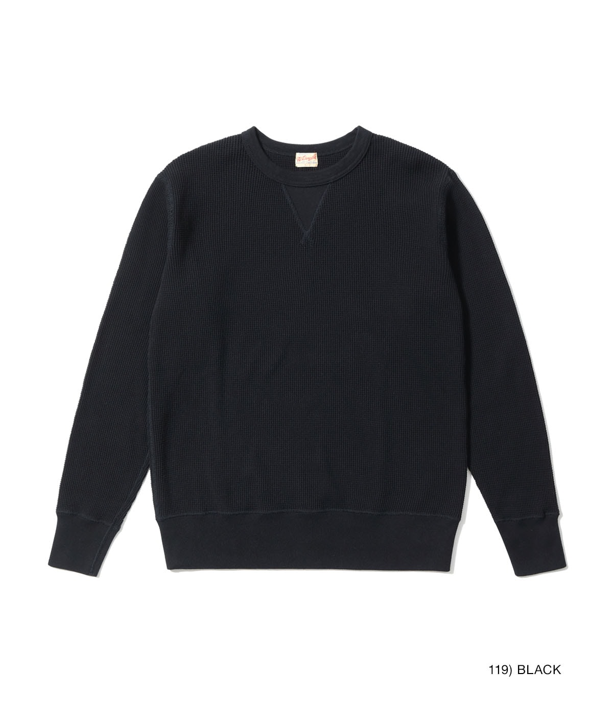 20 番手の双糸で編み立てられたヘビーなワッフル生地は