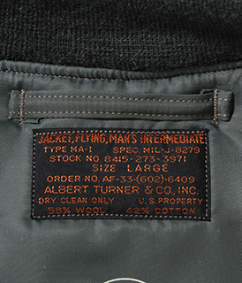 数あるフライトジャケットの中で最もポピュラーで かつ最も息の長い存在がMA-1である MA-1の開発は1950年代初めに開始されたが ベースとなったのはそれまでの正式フライトジャケットの座にあったB-15シリーズである B-15は1943年に登場したコットン製のB-10を改良発展させたもので めまぐるしい技術革新や軍用機の発展に呼応しつつ変貌を遂げてきたのである そうして誕生したMA-1はフライトジャケットの襟を取ると言う 最も大きな改良を加えられたモデルで その背景にはジェット機が開発されそれまでの航空装備の見直しを迫られたからであった 1957年に採用以来 1976年にCWU45/Pが登場するまでアメリカ空軍将兵によって愛され続けた その間には細かい改良が加えられ より完成度の高いものとして発展を続けてきたのは言うまでもない そのスタイルはファッションの世界にも大きな影響を与えており もはやミリタリーの範疇を大きく超えた存在となっている BR14900 Type MA-1 "ALBERT TURNER & CO., INC." PRICE ¥94,600 (Tax in) 在庫につきましてはお問い合わせください。 |
