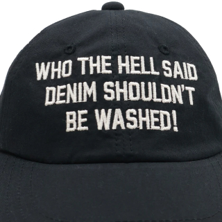 「デニムは洗うな なんて誰が言った?」というデニムに対しての考え方を問いかけるようなメッセージキャップです