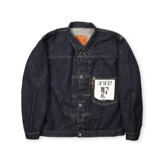 大戦モデルの魅力は、戦時中物資等の使用制限のため簡素化されたディテールが挙げられますが、別の角度から見ますと当時人員不足によって別の職場などから駆り出された経験不足を否めない縫子による荒っぽい縫製も魅力の一つだと言えるでしょう。今回フルカウントはその点に着眼し誇張表現することで迫力のある1枚に仕上げました。地の目を変えた、微妙に巾を細くしたプリーツ止めステッチ、ボタンにはワンスター唐草ボタン、刻印なしのリベット、仕上げの糸つみをせず半製品のような状態で仕上げております。そのままの状態で着用いただくことに何ら問題はありませんが、オーナー様自ら最終の仕上げを楽しんで頂くというご提案でもあります。 |