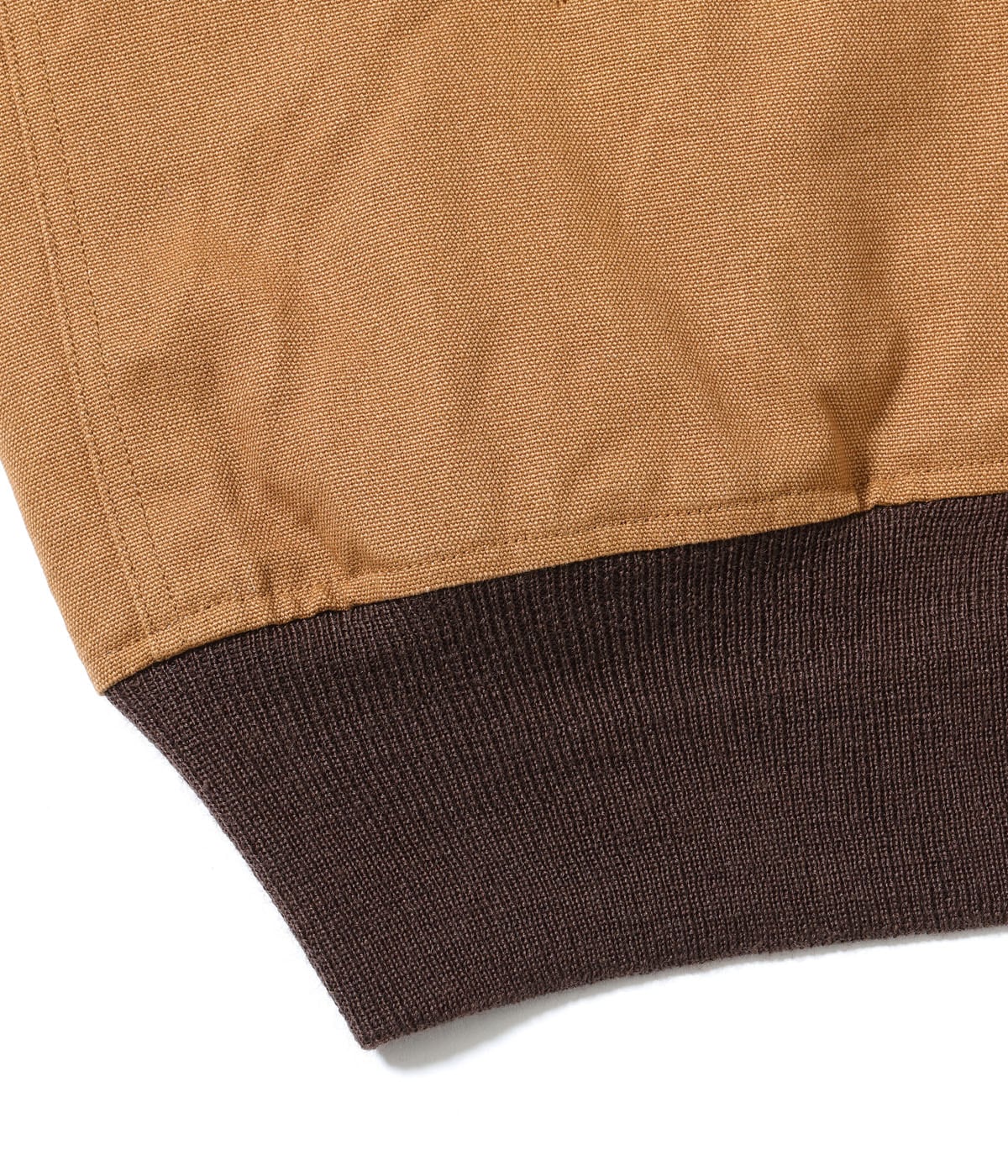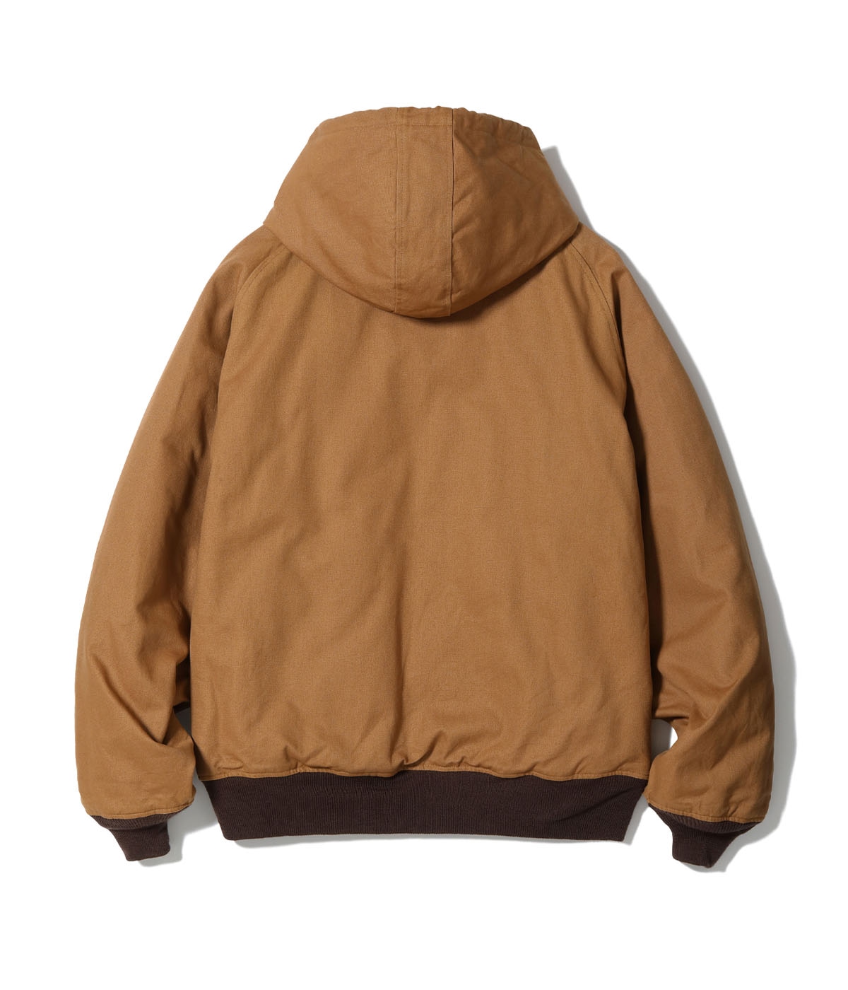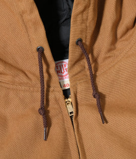 独自に織り上げた硫化染めの12.5ozコットンダック生地を使用したワークパーカ
