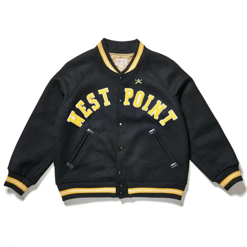 オールメルトンにフェルトでレタリングされた「ウエストポイント」のヴァ―シティジャケットです